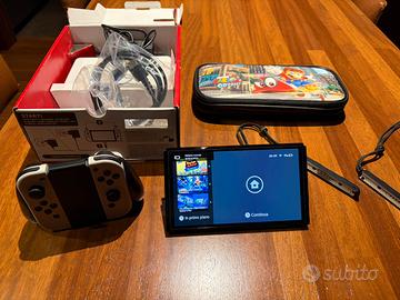 Vendo Nintendo Switch Oled completa di accessori e valigetta originale Super Mario Odissey per il trasporto, imballo originale.