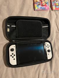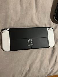Nintendo Switch Oled usata ma in ottime condizioni senza alcun segno partiolare, con custodia. Presenta tutti gli accessori orignari per poterla collegare alla TV e due controller aggiuntivi, di cui uno (blu) con un leggero danno (il tasto superiore non “clicca” benissimo e non funziona nel setup singolo, quindi messo in orizzontale, ma funiziona). Se interessati ho anche i seguenti giochi da comprare in aggiunta: - Super Mario Odyssey 35€ - Zelda Breath of The Wild 38€ - Super Mario Kart 8 35€