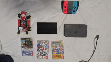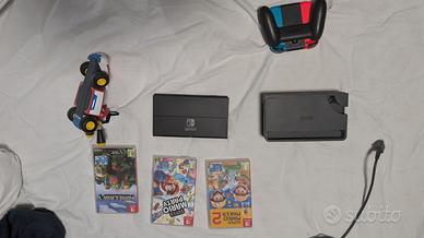 Nintendo switch come nuova usata pochissimo con Mario kart live+3 giochi vendo appunti per inutilizzo la switch e Mario Kat live sono completi di scatole originali + box per trasporto per mettere base di carica fili 20 giochi ecc mando ulteriori foto