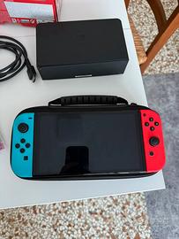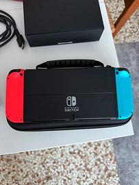 Nintendo Switch Oled blu e rossa con custodia originale e Mario Kart Deluxe 8. Completa di ogni accessorio e nella scatola originale. Praticamente nuova, vendo per inutilizzo; usata 3/4 volte. Non ha nessun graffio o difetto.