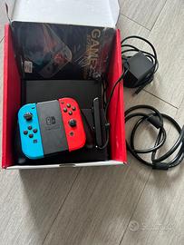 Nintendo oled (con joycon rosso con piccola lesione , funzionante , da vedere sulla foto ) + 24 giochi + una custodia + un joystick + dispositivi dei giochi + cavo hdm per tv e porta giochi