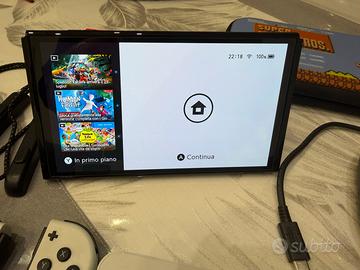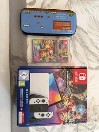 Vendo nintendo switch oled con pellicola prottettiva piu cambio, scatola, scontrino e giochi acquistati on line piu suoer mario acquistato da parte (solo super mario attualmete ha un valore ancora di 50€) Custodia originale nintendo super mario. Tutto tenuto in perfetto comdizioni vendo perche mio figlio vuole la psp. Prezzo poco tratrabile scalbio solo a mano