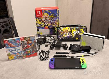 Vendo Nintendo Switch Oled Splatoon 3 Edition in condizioni eccellenti! Box originale. La console è stata utilizzata pochissimo, pari al nuovo. Protezione display in vetro temperato, completa di tutti gli accessori. Inoltre è compresa la valigetta edizione limitata Splatoon 3, inclusi 3 giochi; Super Mario Odyssey, Sports e Super Mario Deluxe senza custodia! €330 poco trattabile!