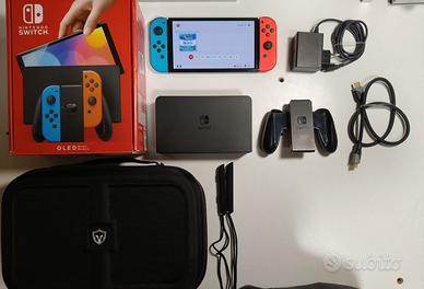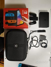 Nintendo switch Oled come nuova completa di tutti gli accessori originali : caricatore originale cavo HDMI originale base x TV v joystick joycon sd da 16 gb scatola custodia per il trasporto PREZZO TRATTABILE