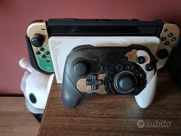 vendo switch OLED con pro controller e custodia tutto in versione limitata Zelda Tears of the Kingdom tutto compreso di scatola originale e accessori. Compresi impugnatura inseribile in dock station e tappi copri levette analogiche.