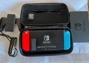 Vendo Nintendo Switch completa di - Dock tv e alimentatore - cavo hdmi - due laccetti - controller - due joycon *** - custodia rigida porta console e cartucce - scheda SD ufficiale Nintendo Switch 128 gb *** La console funziona perfettamente e i joycon non hanno alcun drift. L’unico problema riguarda il joycon sinistro quando staccato dalla console: funziona, ma non i tasti SL e SR (vedi ultima foto). Il problema non c’è quando il joycon viene usato sul controller o attaccato alla console e nella maggior parte dei giochi non influisce. Per questo motivo includo nel prezzo della console la scheda sd da 128 gb, pagata a suo tempo oltre 30 euro, e la custodia. Per informazioni, foto e vdideo scrivetemi