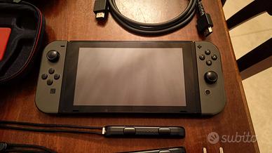 Console Nintendo Switch, che include la console, due controller Joy-Con grigi, un grip per Joy-Con, due laccetti da polso, cavo HDMI, cavo di alimentazione, scheda di memoria microSDXC Lexar da 128 GB e custodia da viaggio
