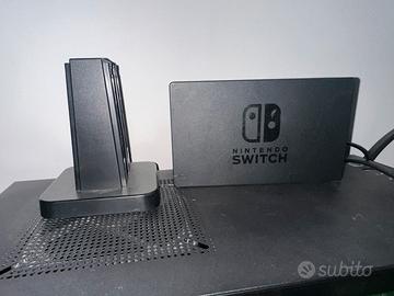 console nintendo switch modello lcd rosso-blu, completa di scatola e accessori originali (dock, alimentatore, 2 laccetti e impugnature joycon)+ gioco mario kart 8 deluxe originale + coppia volanti nintendo + coppia battery pack originale + custodia originale nintendo + sd 64gb + pellicola applicata sul vetro + stazione di ricarica per 4 joycon. no scambi