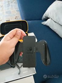 Nintendo switch normale (usata) con Joy con blu e gialli ufficiali+ doc per la televisione+pro controller (usato)+ caricatore+ custodia (che può contenere 8 schedine) +protezione Joy con.