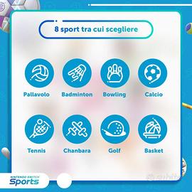 Competi in otto sport, inclusi basket, golf, calcio e bowling, ed esegui movimenti nel mondo reale che verranno riprodotti all'interno del gioco. Incluso nella confezione la fascia per la gamba per il posizionamento corretto del Joy-Con. Per una completa esperienza di gioco è consigliato l'abbonamento a "Nintendo Switch on-line"
