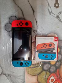 Nintendo swich con cuffie, 2 joistick,4 join coin rossi e blu occorrente x collegarla alla tv usata poco senza giochi vendo per passaggio alla 2 p