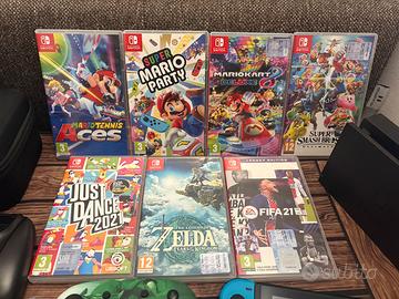 Vendo Nintendo switch usata ma tenuta veramente bene senza alcun graffio perché ho sempre usato cover e pellicola. In piu vendo tutti i giochi , 2 controller funzionanti di cui uno nuovo mai usato Una custodia porta console Cuffie auticolari originali nintendo con gommini nuovi in piu ho anche ,che nn c’è in foto , zelda breath of the wild il gioco