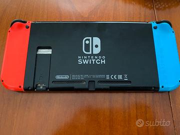 Console portatile Nintendo Switch. In totale 6 anni di utilizzo. La console presenta tutti gli accessori originali e in più un paio di Joy-con dei colori Blu scuro e Giallo con annessi Grip. Nella scatola si trovano: Console, 4 Joy-con, 4 grip per joy-con, DOC di ricarica, adattatore per utilizzo dei Joy-con come un gamepad, cavo HDMI, cavo di alimentazione americano. Il Joy-con destro di colore rosso presenta un difetto nel tasto R che non funziona. Mancanza del cavalletto posteriore.