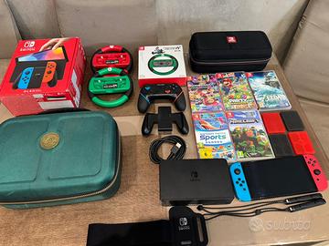 vendo Nintendo switch OLED usata poco, come nuova la vendo per inutilizzo con tutti i suoi accessori originali in più compresa di due volanti e custodia originale nintendo, joystick e 5 giochi Mario party super star Nintendo sport Minecraft Zelda tears of the Kingdom Mario kart Vendo solo lotto intero non giochi separati Prezzo leggermente trattabile