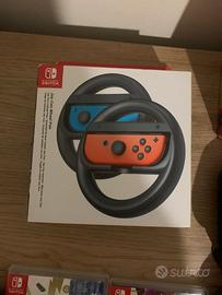 Nintendo Switch completa di tutti i suoi accessori, 2 joypad, 2 mini volanti, custodia, mario party, pokemon scarlatto. ottime condizioni, nessun graffio o segni particolari.
