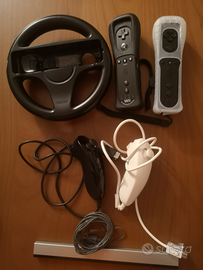 Nintendo Wii perfetta con n. 2 controller con guscio protettivo, n. 2 nunchuck, ea sport active con n. 2 sensori (braccio e gamba) e barra rilevamento del movimento, volante e vari giochi. Consegna a mano