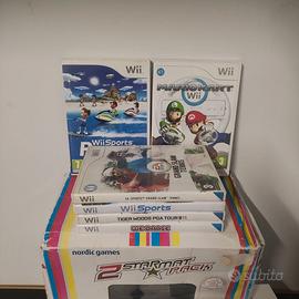 5 giochi: Mario kart, wii sports , sports resorts, we dance, ea sports grand slam tennis, tiger woods