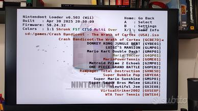 Console Nintendo Wii completa e pronta all’uso, con ampia selezione di giochi Wii e GameCube e libreria completa NES e SNES. Inclusi: Wii con cavi originali Wii Remote (Motion) originale Barra sensore originale Alimentatore originale Adattatore HDMI per collegamento moderno Gioco Wii Sports 2 manubri originali Mario Kart Cavi video e alimentazione Sistema già configurato con menu giochi intuitivo (come da foto). Ideale per giocare subito a titoli classici e moderni senza configurazioni.
