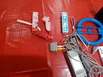 nintendo wii completa di cavi e sensore di movimento... incluso un controller minny e un nunchuk controller azzurro funzionante ma solo i tasti 1 volante e un gioco my sims ... per informazioni contattatemi.