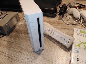 Wii completa di cavi, gioco wii fit con controller e accessori in foto