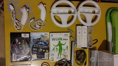 Nintendo Wii console, No. 2 Controller, No. 2 Nunchuck, No. 1 Balance Board bianco con protezione e custodia, No. 2 Volanti.