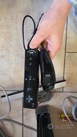 vendo console wii nera testata e funzionante, insieme a : telecomando Wii, accessorio Nunchuk, barra sensore e i relativi cavi di alimentazione e video. la scocca della console presenta qualche graffiatura laterali ..mando piu foto via chat