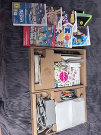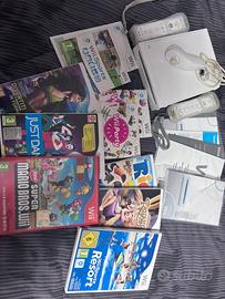 Nintendo Wii in ottime condizioni, completabin ogni sua parte con aggiunta di 6 giochi originali oltre i 2 compresi bella box originale. Contiene: console, cavi vari di collegamento, 2 telecomandi con copertura, un joypad, sensore di movimento e 8 videogiochi originali.