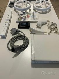 Vendo Nintendo Wii comprensivo di tutti gli accessori in foto: - Cavo alimentazione - Cavo presa scart + adattatore per tv nuove - Ricevitore segnale telecomandi - 2 Telecomandi - 2 Volanti - 2 Nunchuck - Mario Kart Wii