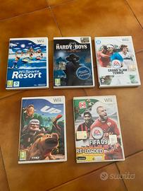 Console Nintendo Wii nera, con qualche segno del tempo ma perfettamente funzionante, completa di tutto: un controller originale + Nunchunk, cavo video, alimentatore, barra sensore e 5 giochi originali con custodia: Wii Sport Resort The Hardy Boys: the Hidden Theft Grand Slam Tennis Wii Pixar Up (senza manuale) FIFA 09 All-Play (senza manuale) Non sono presenti la scatola e i manuali della console.