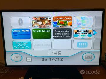 Si tratta di una console Wii Nintendo nera dotata della sua confezione originale e corredata da: Sports Pack Wii + Gameon Balance board compatibile con la Wii e di 4 giochi. Come si può vedere dalle foto è completa di nr.. 2 Telecomandi Wii con protezione, alimentatore e cavi per l 'alimentazione. E’ stata usata da mio figlio ma è in ottime condizioni. Vendo per inutilizzo.