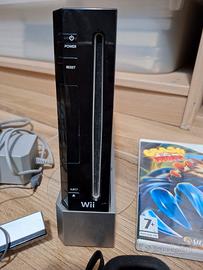 Nintendo wii perfettamente funzionabile. Comprende: Console, supporto console, alimentatore AC, cavo AV, telecomando con laccetto da polso e guscio in silicone, barra sensore, nunchuk, 2 giochi