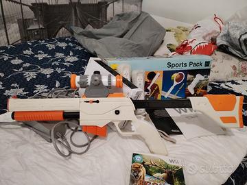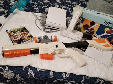 Vendo per inutilizzo Nintendo Wii come da foto + Fucile e gioco di caccia. Inoltre compreso pacchetto accessori gioco sport: racchetta tennis , mazza basebool e golf. Tutto funzionante. 45 euro.