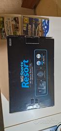splendida nintendo wii con scatola messa piu che bene con 2 controller uno nero uno blu e 1 nunchuk completa di cavi e camera e tutto il resto pari al nuovo unica pecca mancano le istruzioni