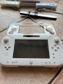 Console Nintendo Wii U bianca, completa di GamePad originale, cavi di alimentazione e HDMI, 2 telecomandi, accessorio per sincronizzazione tv-telecomando.