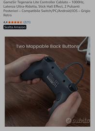 Personalizzazione Avanzata: Pulsante M multifunzione per controlli rapidi – programma i pulsanti posteriori, regola la zona morta, attiva il turbo, personalizza la vibrazione e scambia il layout ABXY.