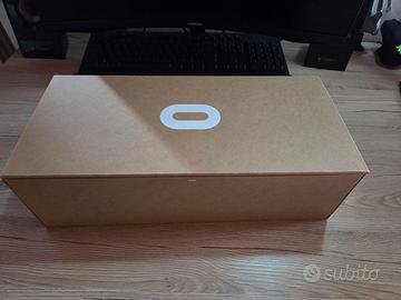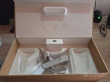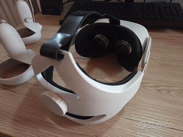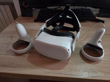 Visore Realtà virtuale Oculus Quest 2 usato in ottime condizioni. Il laccio montato in foto non è quello originale ma una versione migliorata acquistata a parte, l'originale è presente nella scatola. Completo di tutto.
