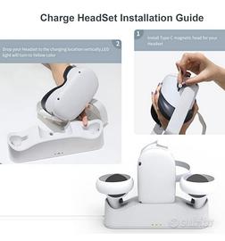 Kit di ricarica per Oculus Quest 2 VR Headset VR Dock di ricarica VR Presa sinistra e destra Dock di ricarica con indicatore LED con 2 batterie ricaricabili (JYS-OC003)