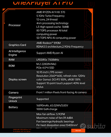 Vendo questa meravigliosa console che nello stesso tempo e' anche un pc velocissimo (windows 11 ) ed un tablet avendo la tastiera removibile. Girano tutti i giochi triple A IN MANIERA SUPERBA: testati Resident evil requiem, Indiana Jones, Red dead redemption 2, Cyberpunk. Questa e' la console portatile piu' potente in assoluto e io le provate tutte: Steamdeck, Legion go e Asus rog ally. Questa le distrugge tutte ed in piu' e' un pc molto potente. Purtroppo io ho un problema di salute e non posso utilizzare console. E' tenuta in maniera maniacale, con tutti gli accessori, perfetta senza un graffio acquistata dallo store ufficiale a dicembre 2025 e pagata oltre 1400 euro e USATA POCHISSIMO per la mia problematica di salute che si e' acutizzata. Il processore AMD RYZEN AI 9 HX 370 A 5.1 GHZ il processore piu' potente per console portatili a 12 core e scheda grafica AMD RADEON 890M, 32 GIGA DI RAM DDR5 !!!!! Tutte le specifiche tecniche le vedete nella foto allegata Per favore NON FATE OFFERTE ridicole. Per qualsiasi informazione contattatemi anche telefonicamente