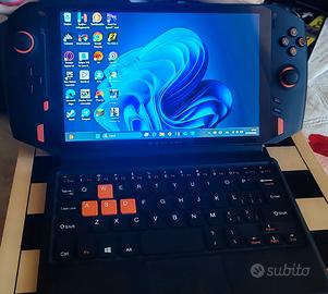 Console portatile OneXPlayer 1S con finiture nere e arancioni. Ideale per il gaming in mobilità.