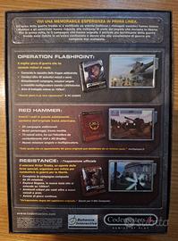 Scatola per collezionisti che include l'originale Operation Flashpoint: Cold War Crisis e le due espansioni con i relativi manuali. Videogioco per PC.