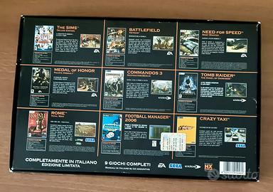The Black Box Pc Collection originale. Da collezione. Edizione limitata CD/ROM-DVD/ROM. Edizione Italiana 2006. Contiene 9 giochi per PC: - Battlefield Vietnam - The Sims Deluxe Edition - Need for Speed: Most Wanted - Medal of Honor: Pacific Assault - Commandos 3: Destination Berlin - Rome: Total War - Football Manager 2006 - Crazy Taxi -Tomb Raider: The Angel of Darkness Sistemi operativi compatibili: 95/98/98SE/2000/XP Consiglio di usare un software virtuale di Windows XP.