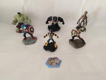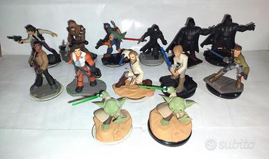 Sono tutti testati e funzionanti, quasi tutti integri, qualcuno ha qualche piccolo difetto. ----------------- 2a foto Personaggi Disney infinity 1.0 (da sinistra a destra...) Mr. Incredible, Sulley, Jack Sparrow e cristallo - 2 euro l'uno Davy Jones - 5 euro Playset Lone Ranger (2 personaggi + cristallo) - 10 euro Cars - 3 euro l'una, Saetta mc Queen 6 euro, cristallo del gioco 4 euro ------------------ 3a foto: Personaggi Disney infinity 2.0 (da sinistra a destra...) Capitan America - 4 Euro Venom e Groot - 8 euro l'uno Capitan America - 6 euro Nova - 3 euro Drax - 3 euro (qualche difetto) --------------------- 4a foto: Personaggi Disney infinity 3.0 (da sinistra a destra...) Han solo - 4 euro Chewbacca - 4 euro Finn - 4 euro Poe Dameron - 4 euro Obi-Wan Kenobi (spada sostituita) - 3 euro Boba fett - 4 euro Yoda - 5 euro Yoda FX LIGHT - 8 euro Kylo ren (Spada sotituita) - 3 euro Darth Vader - 6 euro Darth vader Fx light - 9 euro Luke Skywalker FX Light (spada sostituita) - 6 euro Kana Jurrus Fx Light - 7 euro 5a foto: Altri personaggi (da sinistra a destra...) (Disney infinity 2.0) Baymax - 6 euro l'uno, Thinker Bell (campanellino) - 12 euro (Disney infinity 3.0) Minnie mouse - 5 euro Mickey mouse - 6 euro (Disney infinity 1.0) Ralph - 4 euro 6a foto: Playset completo: Alla ricerca di NEMO - 30 euro Playset completo: Inside out - 35 euro Ho in vendita anche i giochi Disney infinity per wii e ps4