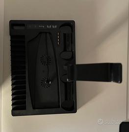 Piattina di raffreddamento per ps5 con doppia ventola, ricarica per 2 controller, appoggio per cuffie e porta custodie dei giochi