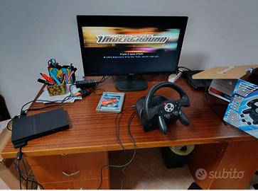 Play 2 completa, con scatola, istruzioni e divisori in cartone. Lato console il cavo dell' alimentazione è un po' lento; io ci ho giocato sempre senza ausilio di scotch o altri elementi che facessero peso. Console testata perfettamente funzionante. Ogni elemento originale. Volante funzionante, anche pedalina. Compreso di scatola e istruzioni. Fornisco Memory card , non in foto. Vorrei vendere tutto assieme e non scorporare. Tutto quello che vedete in foto è compreso.