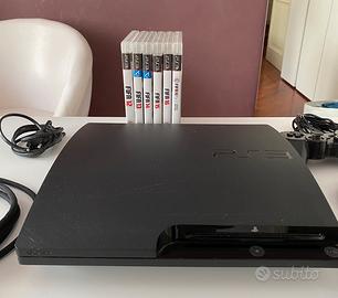 Play Station 3 in ottime condizioni, perfettamente funzionante. Il pacchetto si compone di: console, cavo di alimentazione, cavo HDMI, due joystick originali con cavo di ricarica, sei giochi originali (Fifa 2018, Fifa 2016, Fifa 2015, Fifa 2014, Fifa 2013, Fifa 2012).
