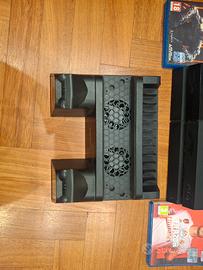 Base porta play con alloggio per due joystick, ventole di raffreddamento incorporate e schermo per verificare la carica dei joystick.
