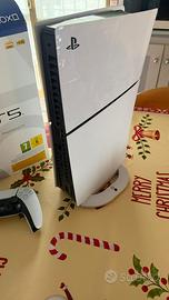 Vendo play station 5 slim + base + 5 giochi per inutilizzo. Prezzo trattabile Comprata a febbraio 2025, con scontrino e garanzia Game Stop