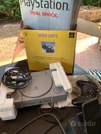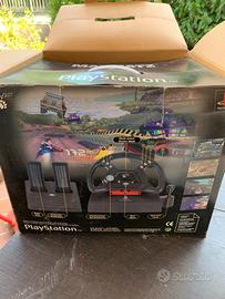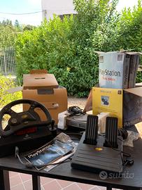 Play station Sony Dual Shock con due volanti a pedaliera Mad Catz di cui uno ancora incelofanato.