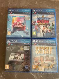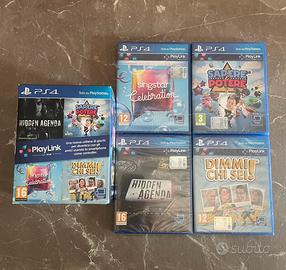 Play Link Playstation 4 originale SONY Cofanetto nuovo, aperto solo per fare le foto. Giochi ancora incaratati e mai aperti. Collana di 4 giochi per serate divertenti con amici usando lo smartphone come controller. -Hidden Agenda -Sapere è Potere -Singstar Celebration -Dimmi chi sei! Prodotto nuovo Spedizione 12/24h