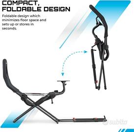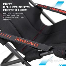 Sedile per simulatori di guida per PlayStation 5, Nintendo Switch, PlayStation 4, Xbox Series X. Sedia gaming, come a bordo di una vera auto. La Playseat Challenge è una soluzione tutto in uno, senza la pedaliera e il supporto per il cambio, eventualmente acquistabili. La portata è di 122 kg, il peso contenuto di 9 kg e la possibilità di ripiegarla. Ideale per il gioco in casa. Il materiali e l' ergonomia in simil-alcantara è morbido, il volante robusto e ben posizionato.